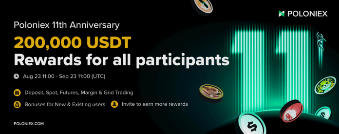 Panama Metropolis, August 25, 2025 – Poloniex, the chief of worldwide cryptocurrency exchanges, has introduced a month’s celebration to have fun its eleventh anniversary. The marketing campaign, which runs from 11:00am on August twenty third to September twenty third, from 11:00am on September twenty third, options 11 thrilling actions and a prize pool of 200,000 USDT throughout all enterprise traces on the platform.