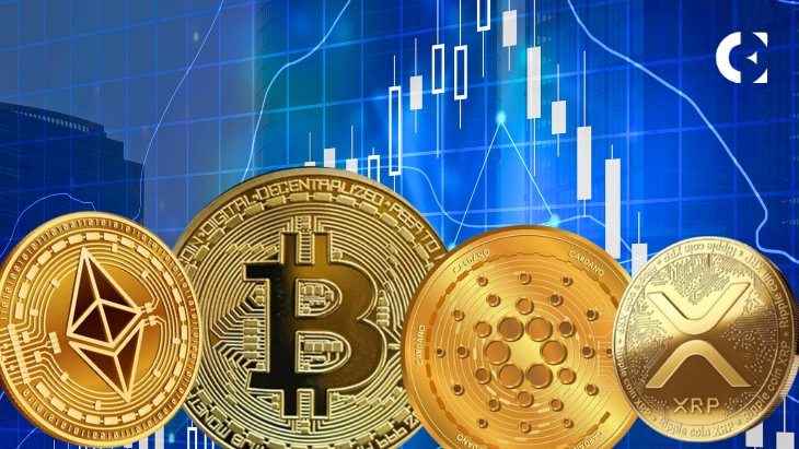 - Cardano’s ADA is up round 3%, however most top-level cryptocurrencies are down.