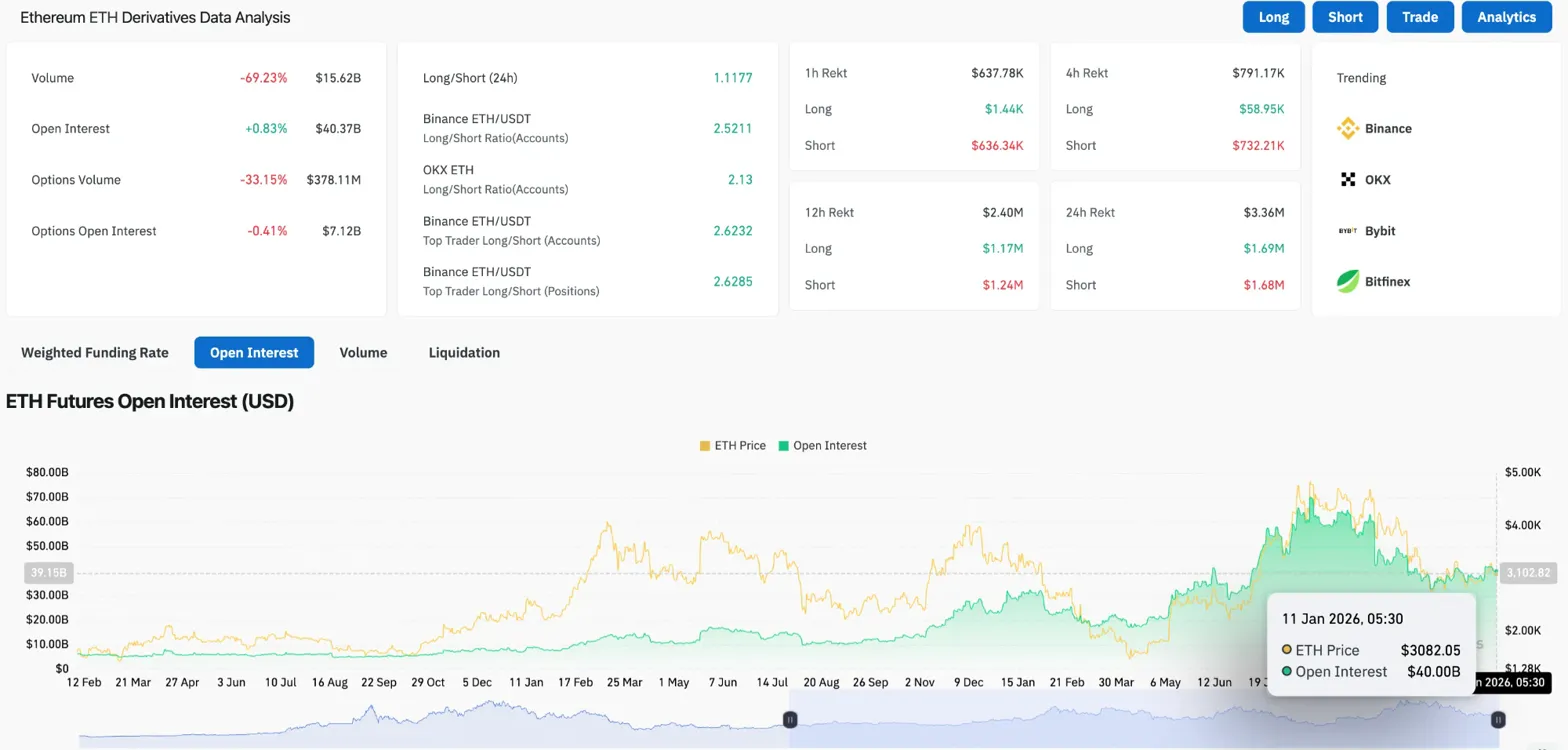 Futures information reveals conflicting indicators. Open curiosity elevated by 0.83% to $40.37 billion, indicating a steady place with minimal deleveraging. Nonetheless, quantity fell 69.23% to $15.62 billion, one of many quietest trades in current months.