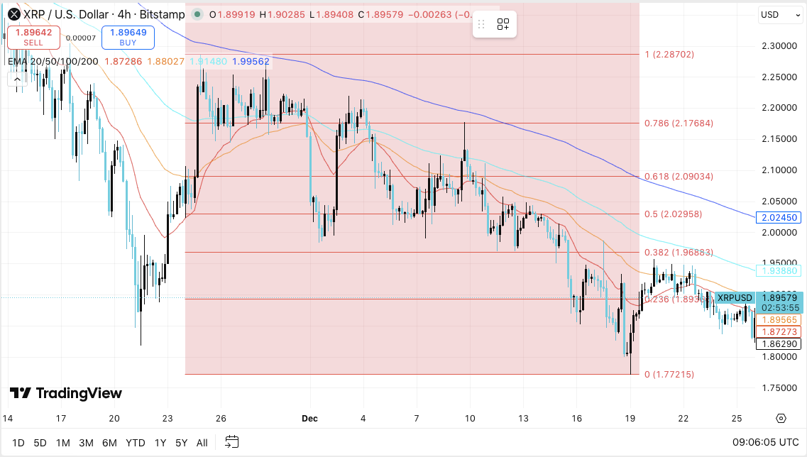 Nonetheless, failure to maintain $1.87 might negate the pullback and expose decrease ranges. For now, XRP stays at an necessary inflection level.